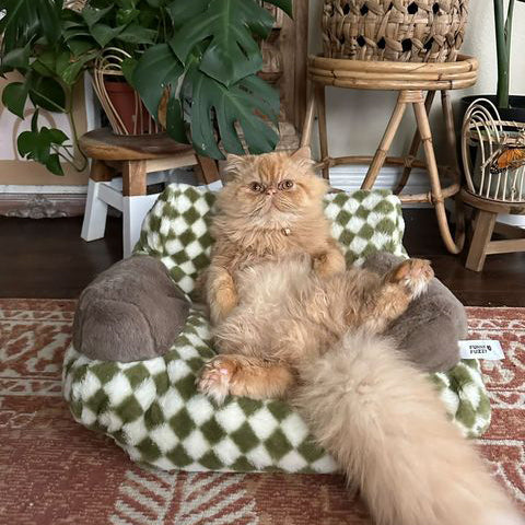 I’m slowly growing a little cat forest for Soju and Sake… Look at this cute sofa and flower rug from @funnyfuzzy_pet