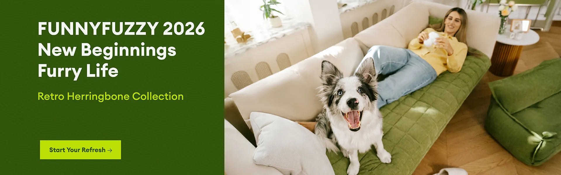 Inspired by spring’s fresh palette, we’ve chosen dog-visible green (proven to resonate with pups’ vision) and soft neutrals, waking up the seasonal energy of both you and your furry companion. More than a decor trend: This fabric is widely used in curtain designs, seamlessly blending with all home styles.