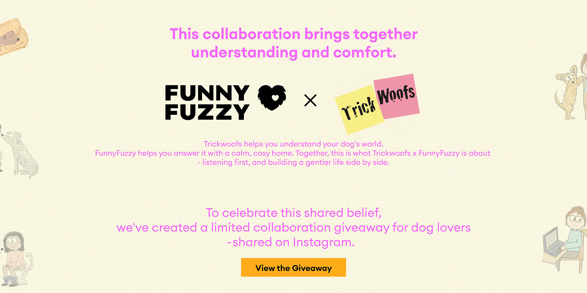 Use code FFTRICK25 for the Trickwoofs × FunnyFuzzy collab.
