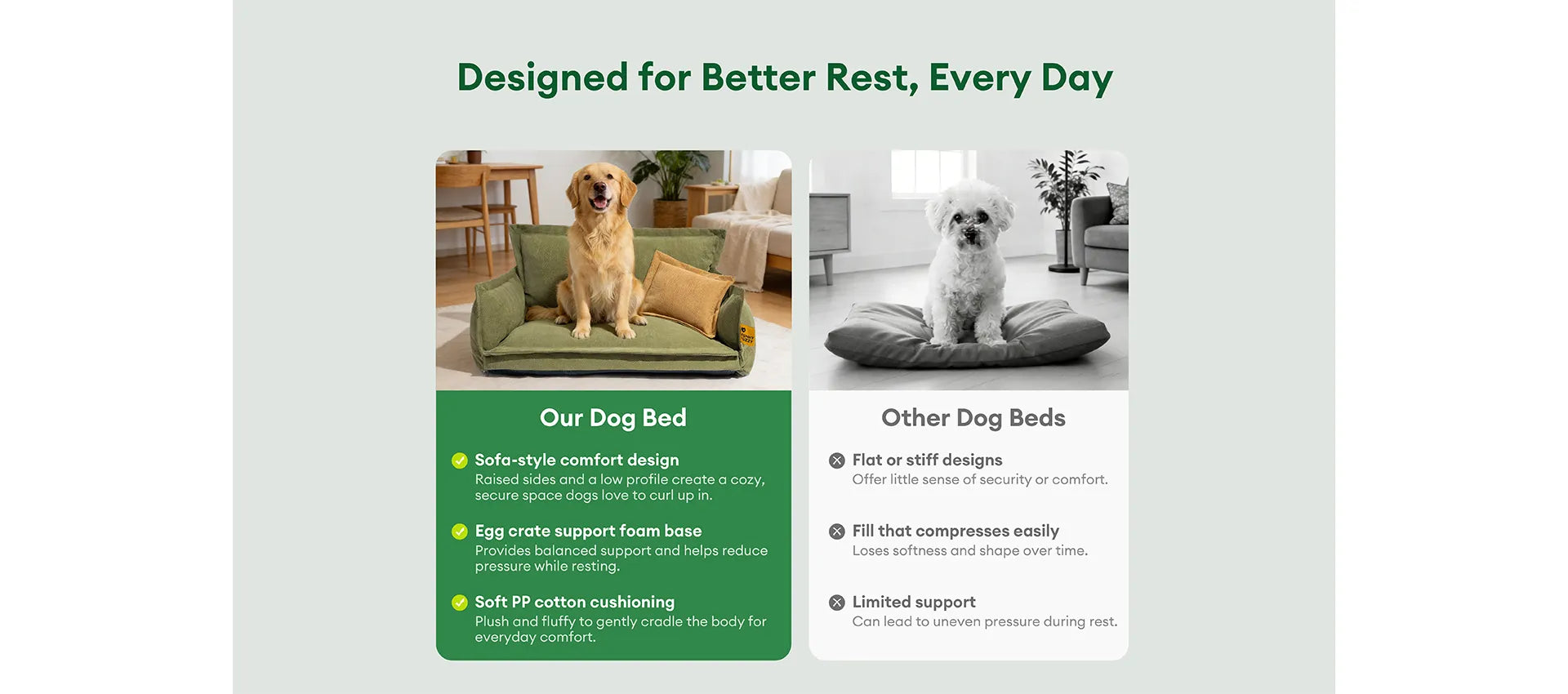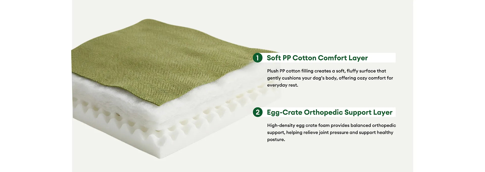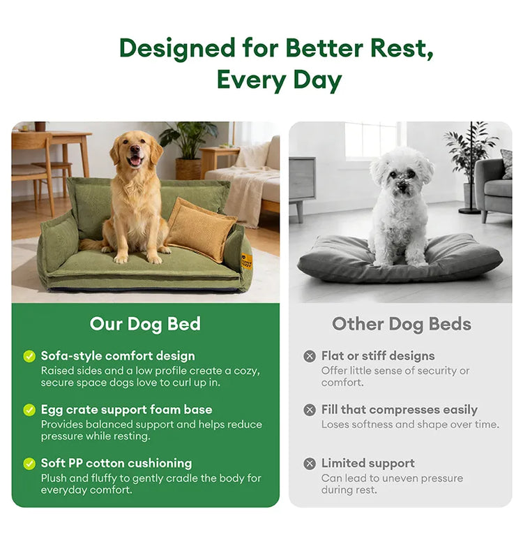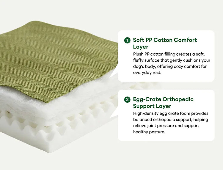 Dual-layer Orthopaedic Support: Engineered with a dual-layer filling of egg-crate sponge and dense PP cotton, this bed cushions joints and muscles for superior orthopaedic support—ideal for senior pets, small breeds, or those recovering from injury.