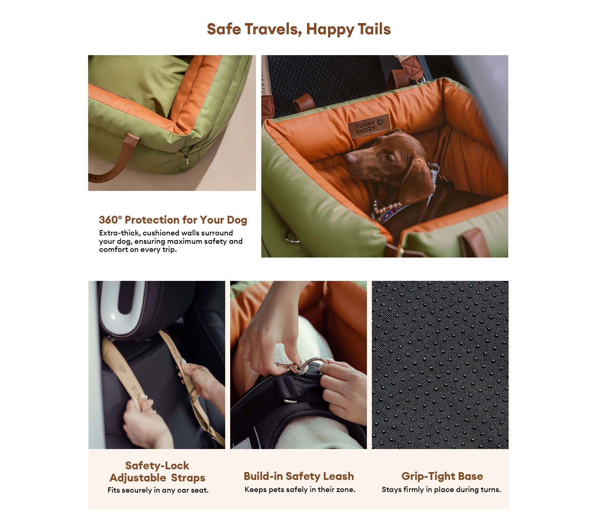 - Enhanced Safety Features: Safety is our top priority. The car seat is equipped with heightened and thicken padding to reduce impact during travel, and built-in adjustable safety leashes that ensure your pet's safety without compromising on comfort. The anti-slip bottom keeps the seat in place, offering stability even in rough conditions.