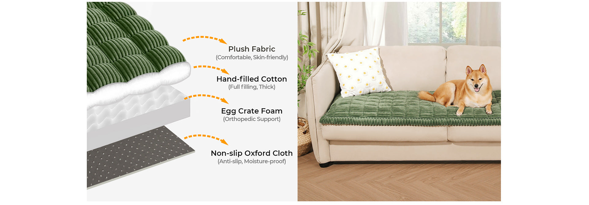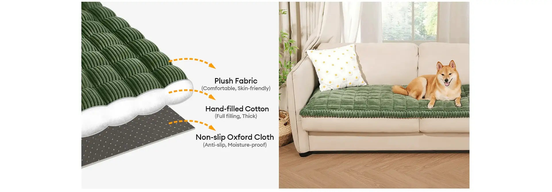 - Keep Your Sofa Looking New: Pets can be tough on furniture, but our durable couch cover has you covered. It acts as a sturdy barrier against scratches, spills, and pet hair, helping to maintain the pristine look of your sofa for years to come.