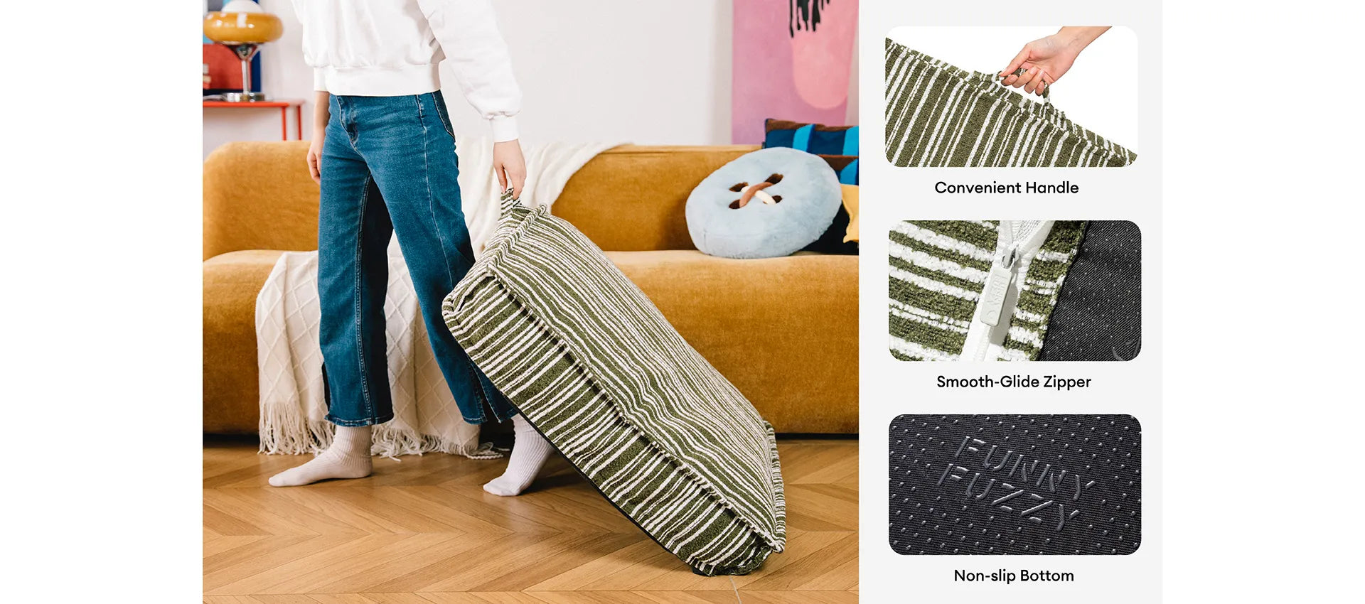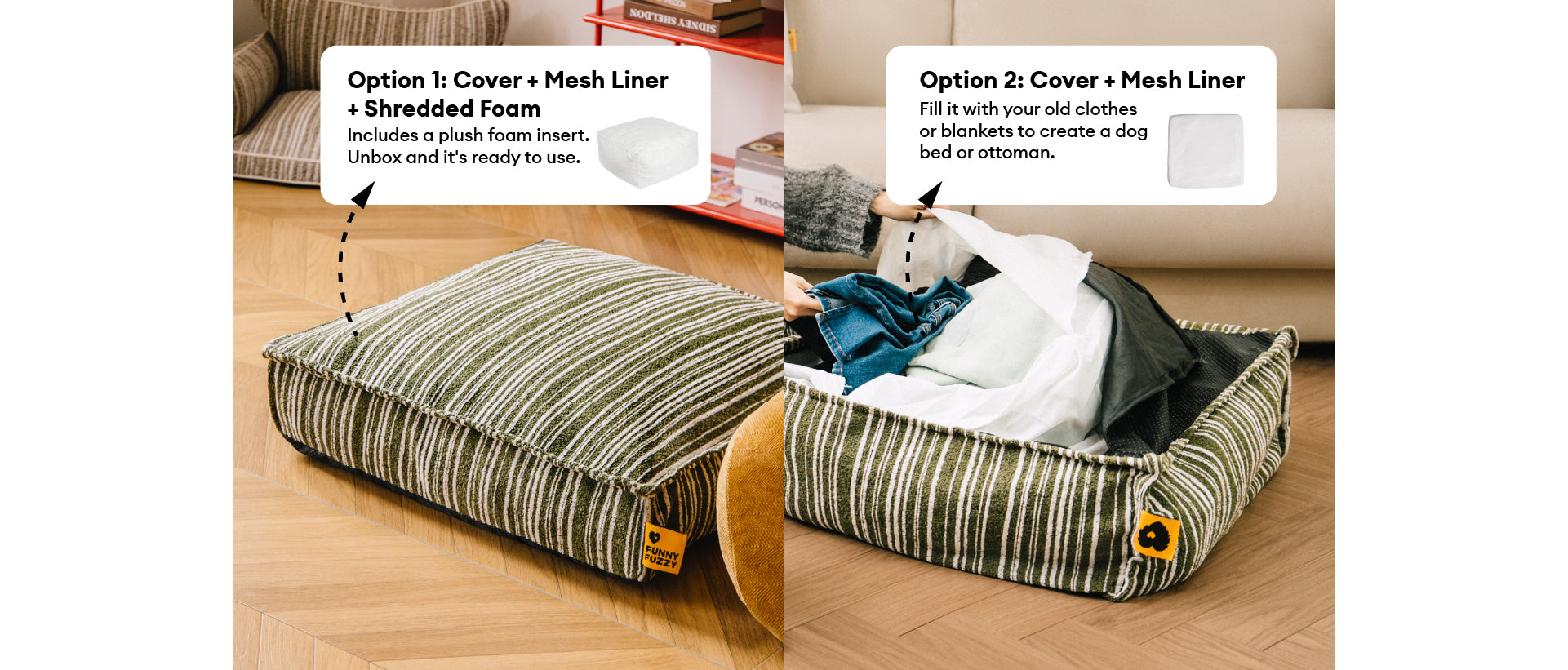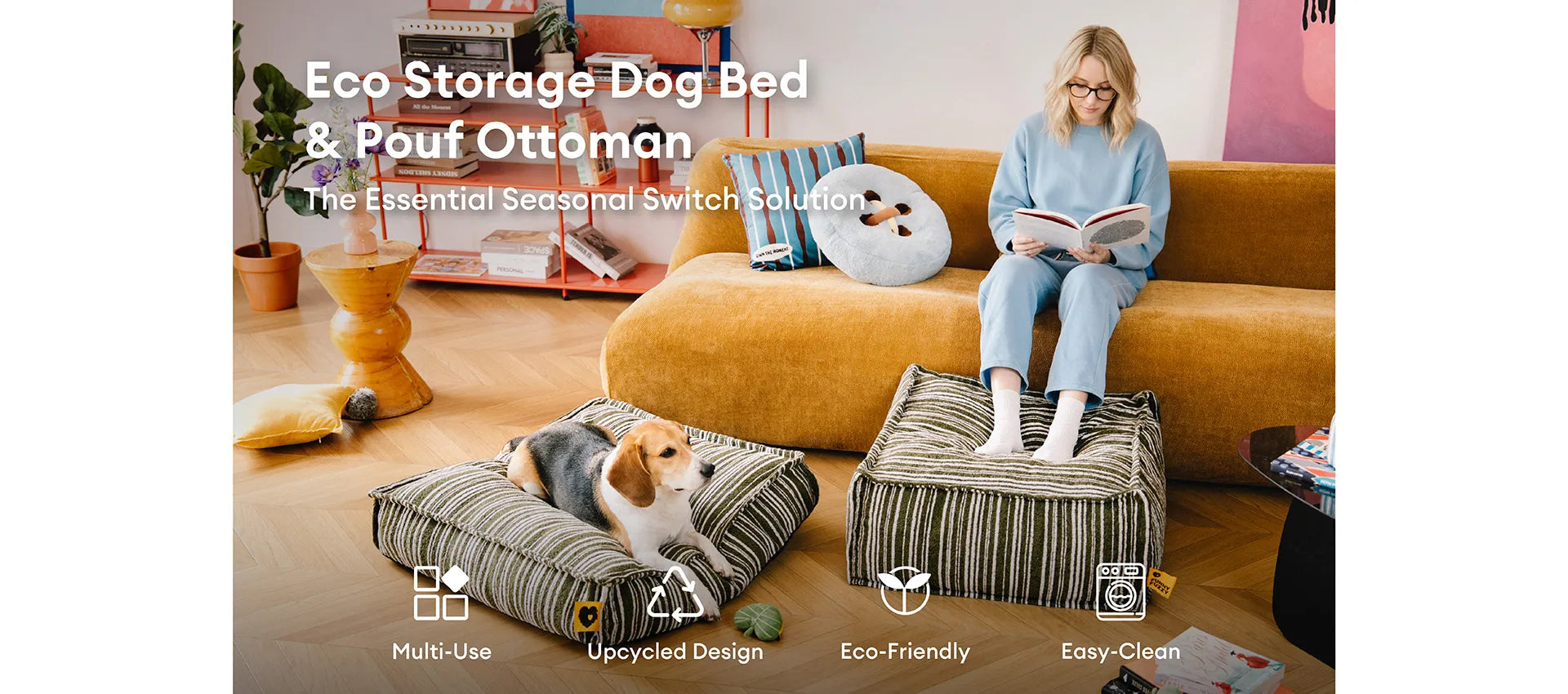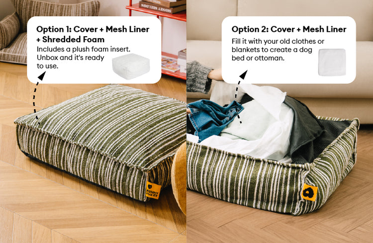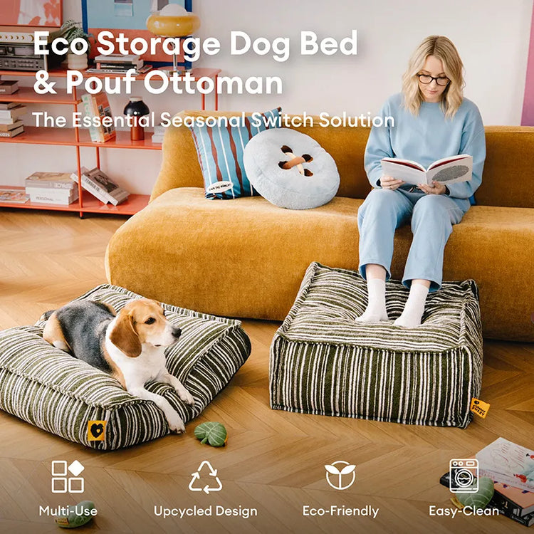 Sustainable Storage Pouf Ottoman & Dog Bed - Funnyfuzzy SnugNest